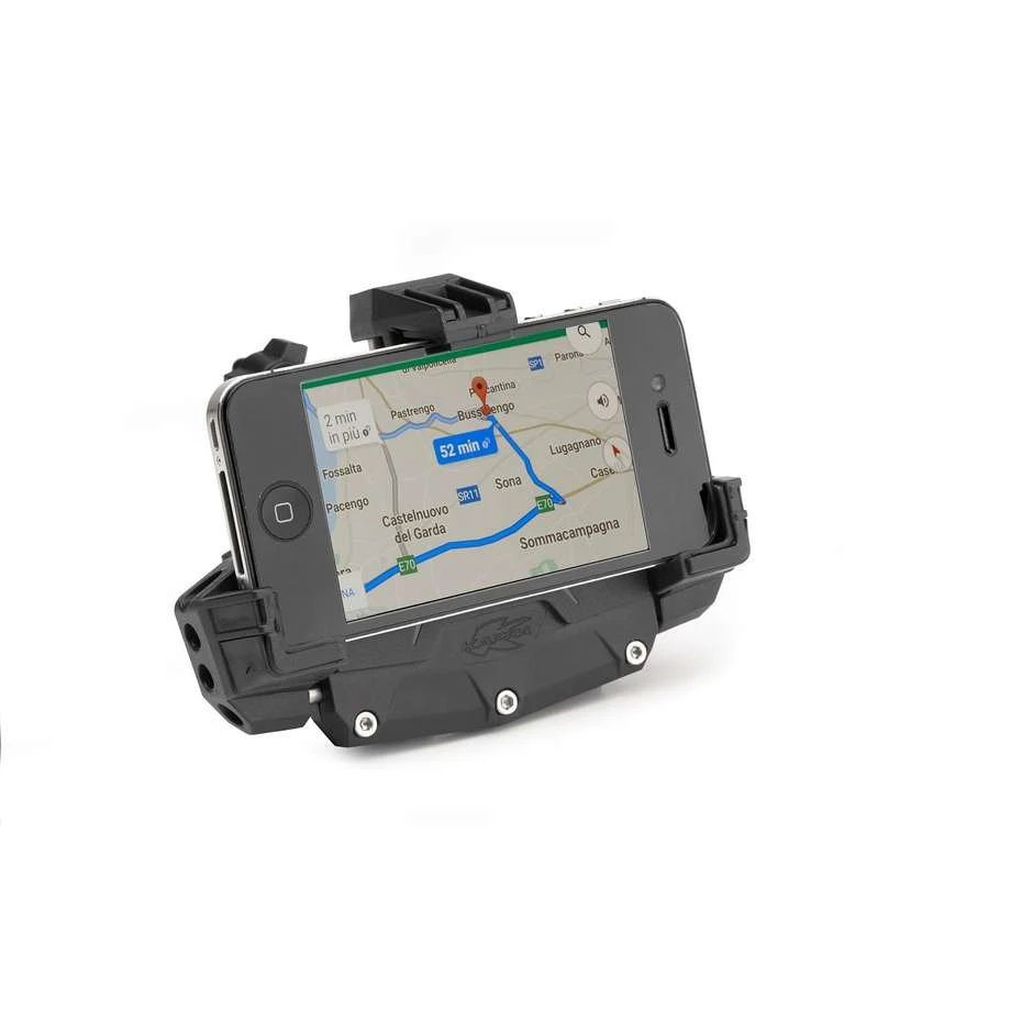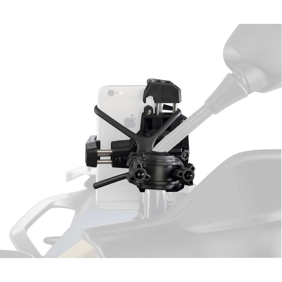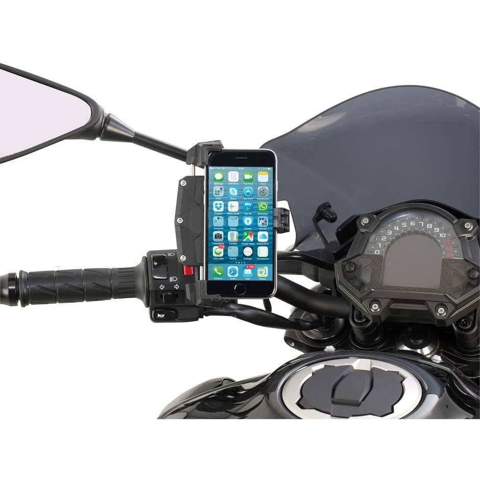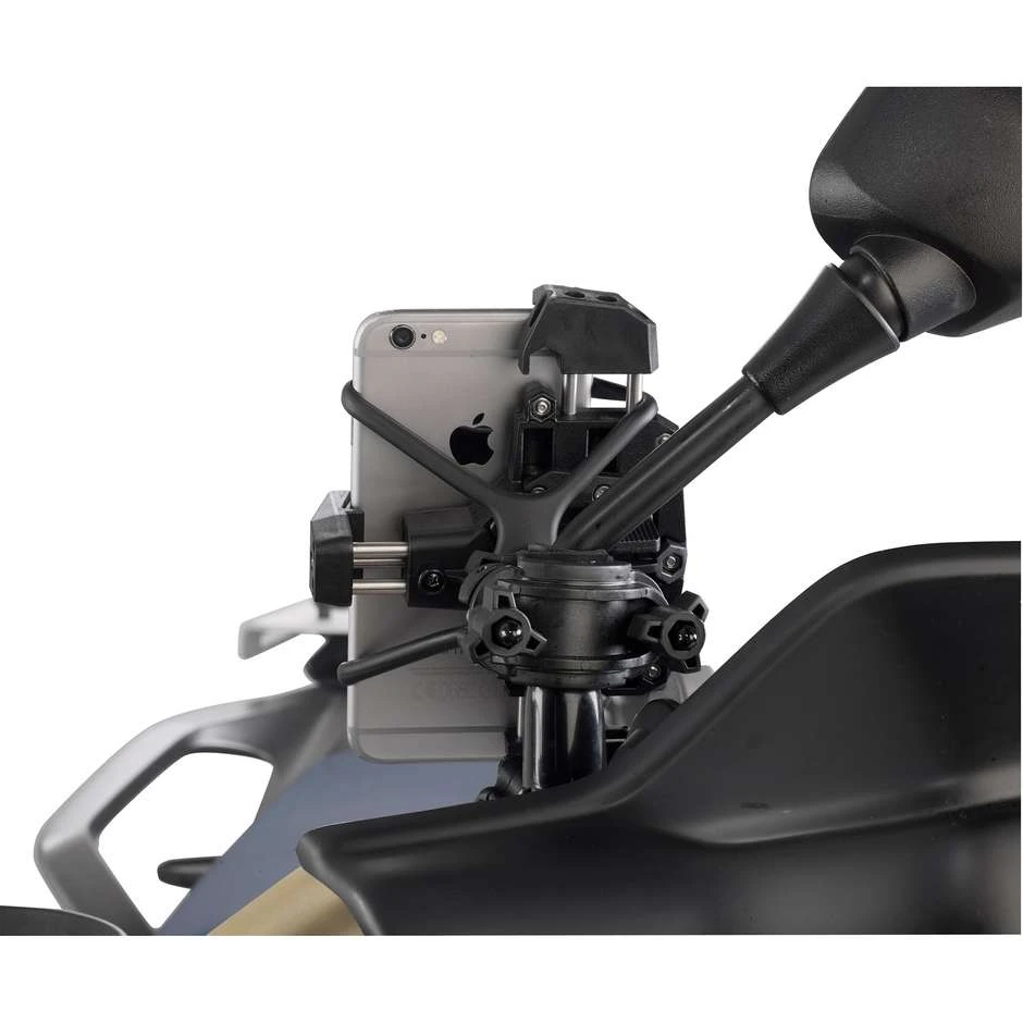 Pinza universale porta smartphone per il fissaggio a moto, scooter, biciclette e quad. Per smartphone con dimensioni esterne: minimo di 112 x 52mm e massimo di 148 x 75mm